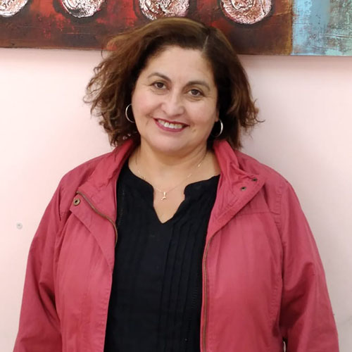 Dirigente social, comunicadora de oficio y profesora de educación general básica, 45 años, casada, dos hijos; con un contundente trabajo comunitario en organizaciones ciudadanas de Andacollo. Actualmente, directora de la Escuela de Talentos andacollino y socia fundadora de la Unión comunal de la cultura.